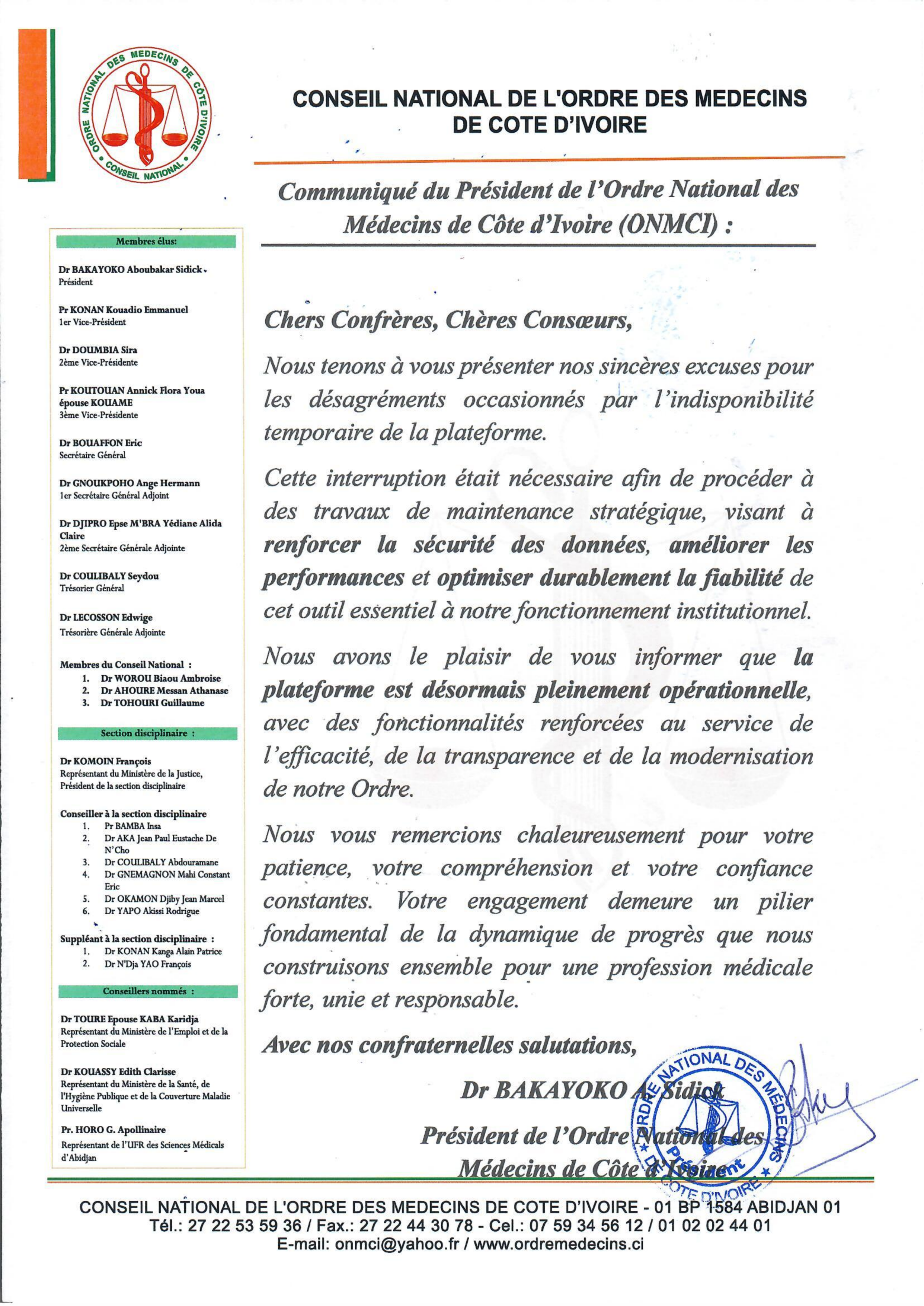 Je suis très heureux de vous accueillir sur le site de l’institution Ordinale de la République de Côte d’Ivoire. Bienvenue à tous sur le site web de l’Ordre National des Médecins de Côte d’Ivoire (ONMCI).